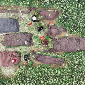 5月17日,河北省柏乡县西苏村农民在采收芦笋(无人机照片)。