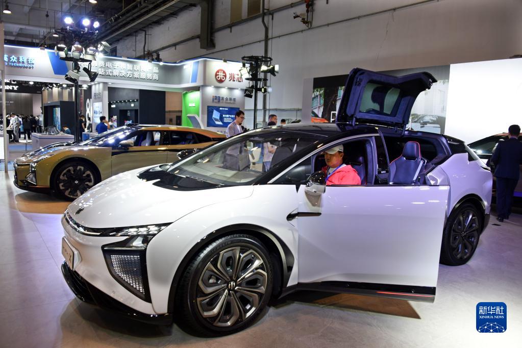 5月17日,参观者在展会上了解一款具备“智慧出行”功能的汽车。