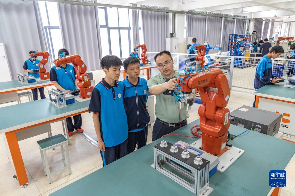 5月17日,在重庆永川职教中心,老师在实训室指导学生。