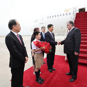 5月17日下午,出席中国-中亚峰会的塔吉克斯坦总统拉赫蒙抵达陕西省西安市。