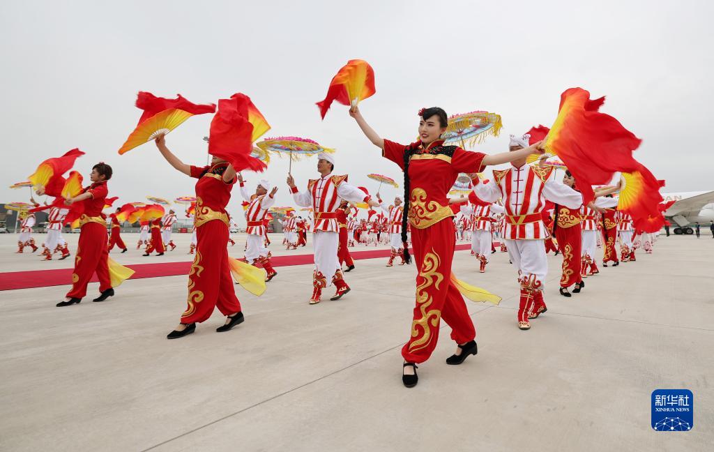 5月17日下午,出席中国-中亚峰会的塔吉克斯坦总统拉赫蒙抵达陕西省西安市。这是欢迎仪式现场。