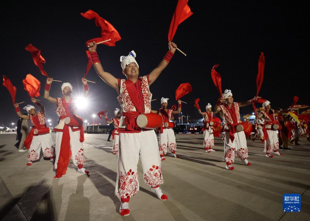 5月18日凌晨,出席中国-中亚峰会的乌兹别克斯坦总统米尔济约耶夫抵达陕西省西安市。这是欢迎仪式现场。