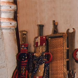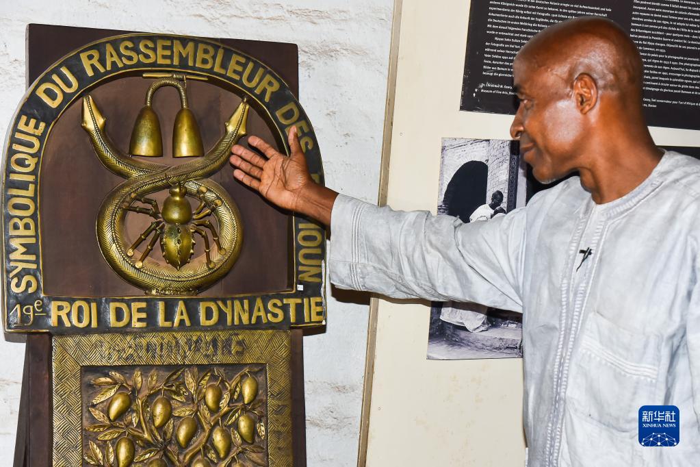 4月12日,在喀麦隆西部大区丰班,巴蒙王宫博物馆向导介绍巴蒙王国的象征。