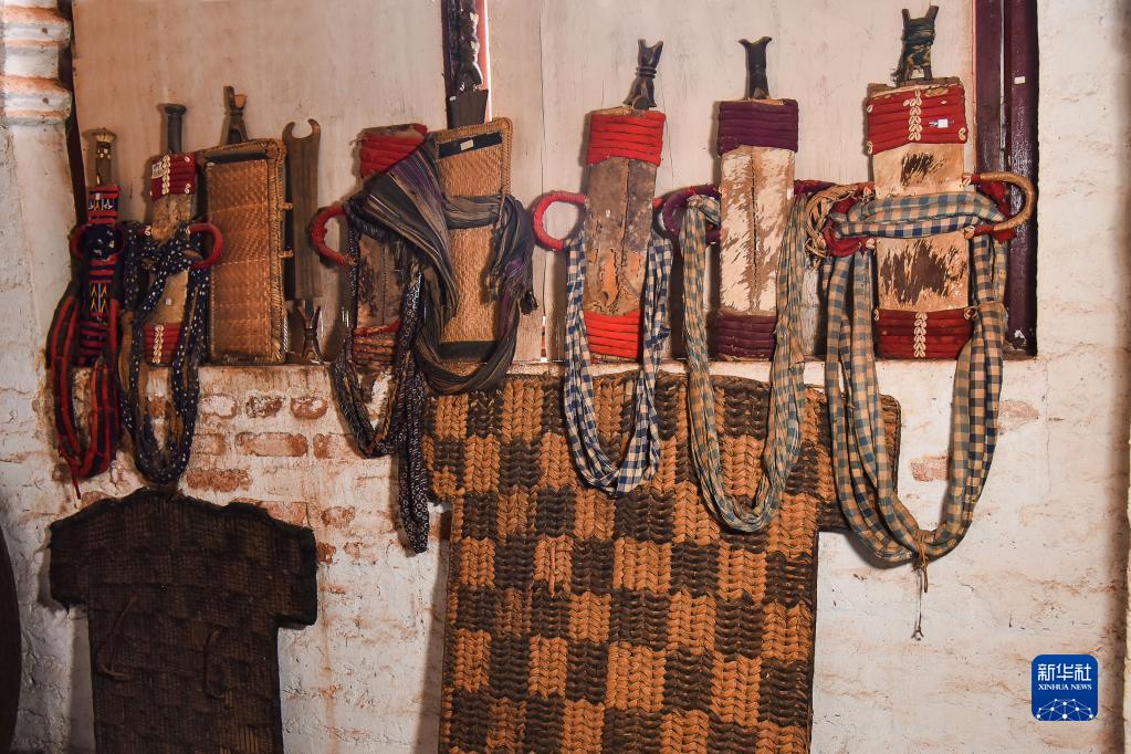 这是4月12日在喀麦隆西部大区丰班的巴蒙王宫博物馆拍摄的过去巴蒙战士使用的武器。