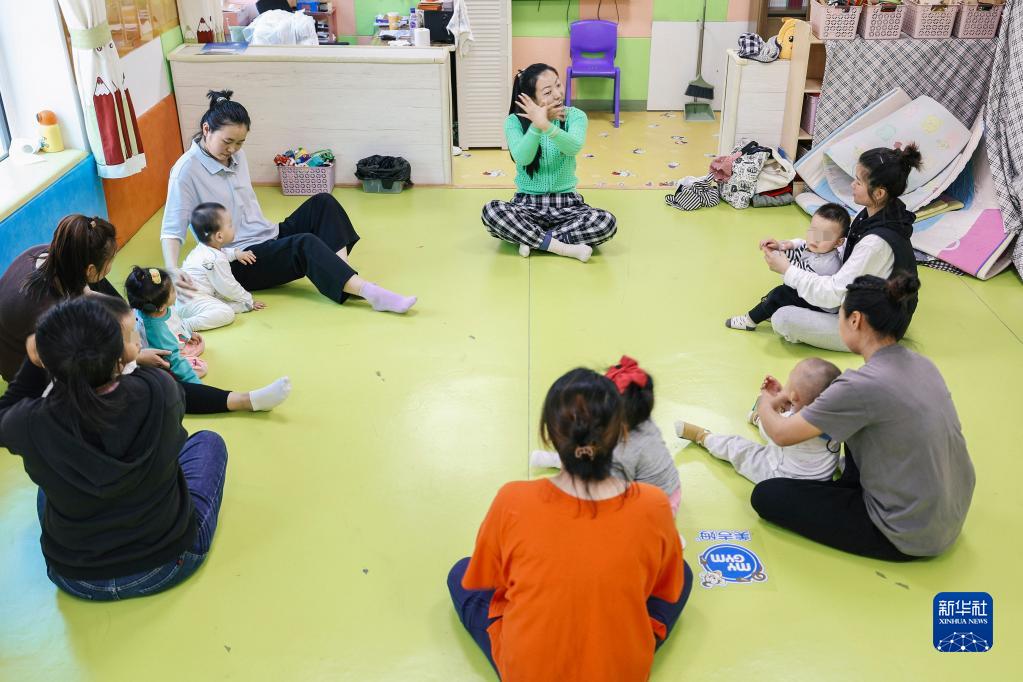 在吉林省聋儿语言听力康复中心,1-3岁的小朋友在家长陪伴下进行听力早期干预亲子课程(5月17日摄)。