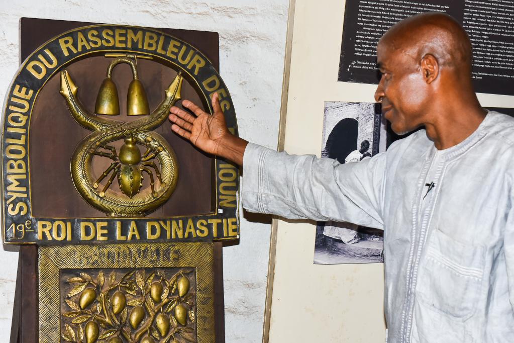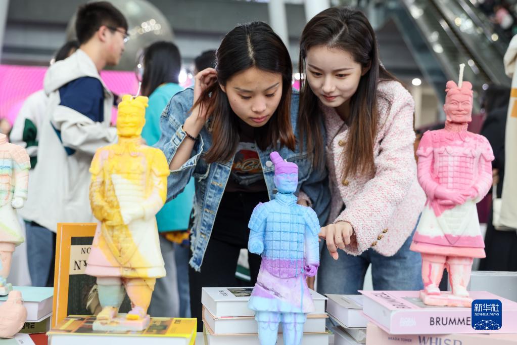 5月18日,观众在博览会上参观手造作品。