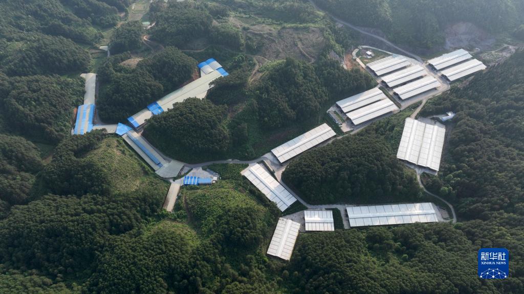 坐落在贵州省黔东南苗族侗族自治州黄平县谷陇镇崇山峻岭中的大型肉牛养殖基地(无人机照片,5月17日摄)。