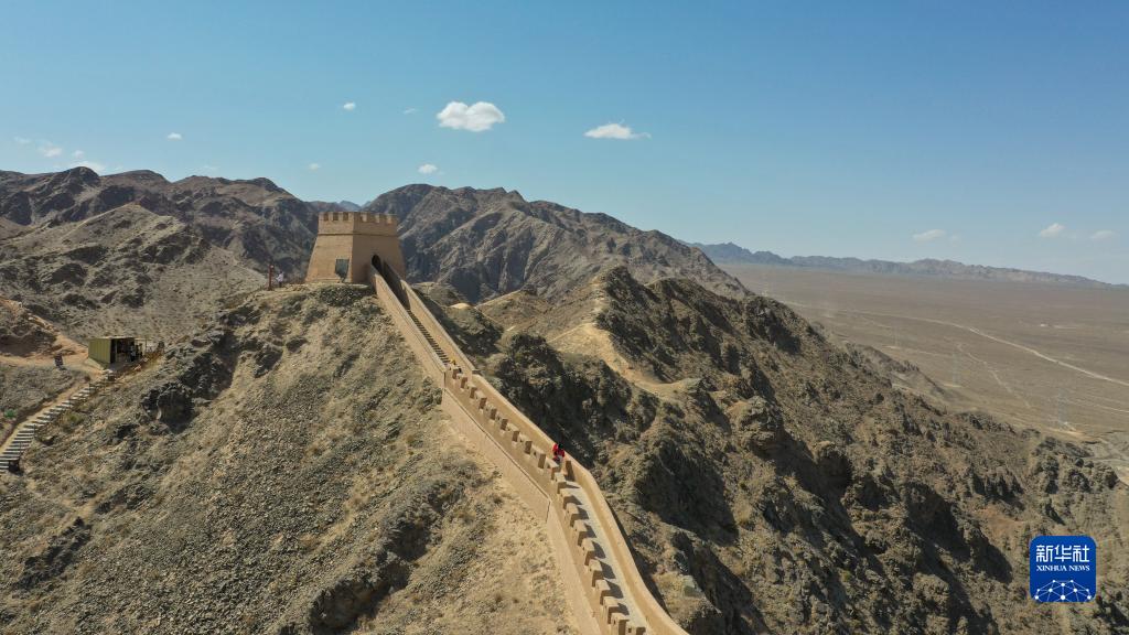 这是5月17日在甘肃省嘉峪关市拍摄的悬壁长城(无人机照片)。
