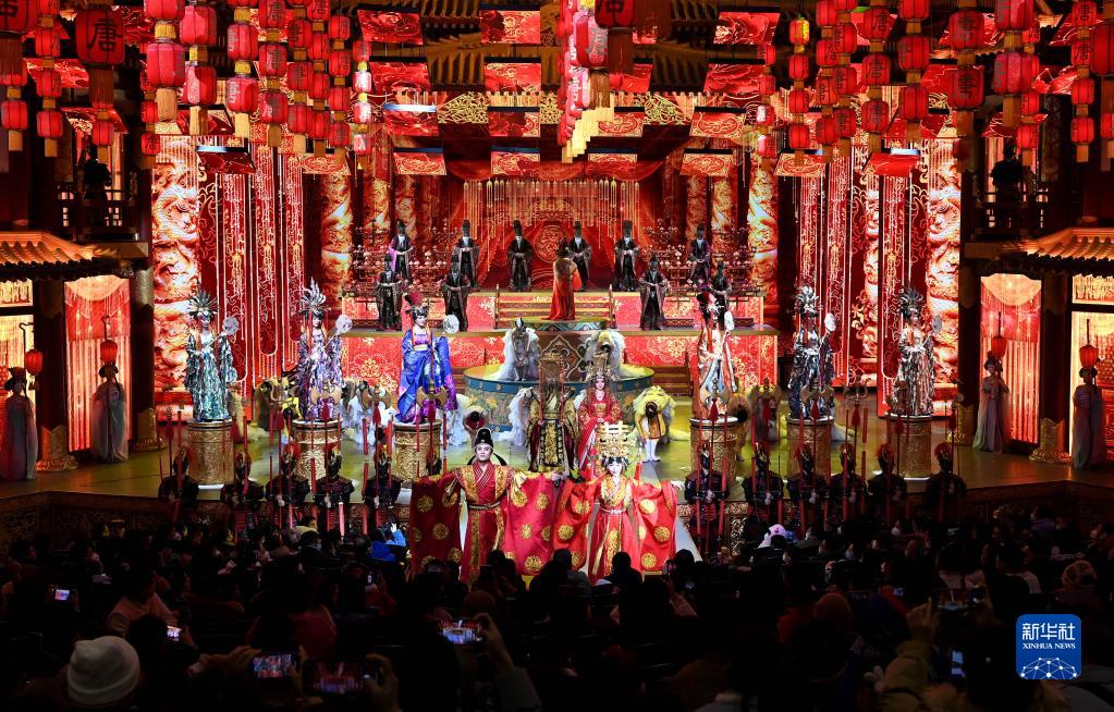 西安大唐芙蓉园内上演的歌舞剧《梦回大唐》(1月24日摄)。