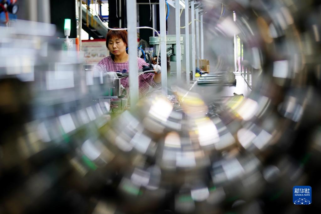 5月18日,河北省平乡县一家打气筒生产企业的工人在组装打气筒。