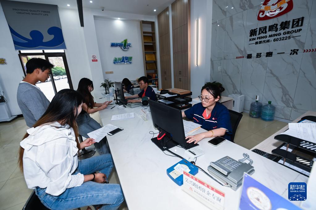 5月18日,湖州市吴兴区政务办“吴兴跑团”驻企服务专员在位于吴兴区东林镇的新凤鸣集团湖州基地为企业“上门办”,为企业员工办证办事。