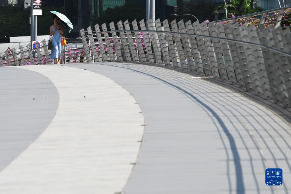 5月18日,行人在新加坡街头用伞遮阳。