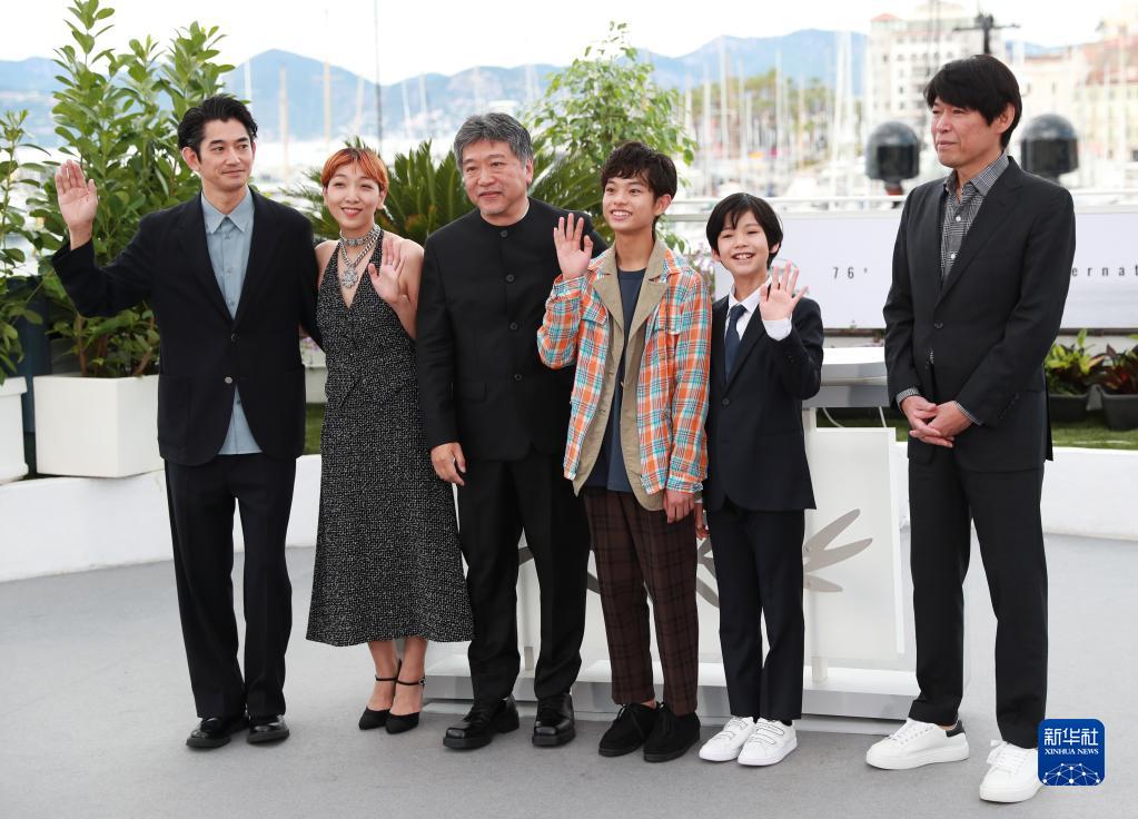 5月18日,在法国戛纳举行的第76届戛纳国际电影节上,日本导演是枝裕和(左三)携主创亮相影片《怪物》的拍照式。