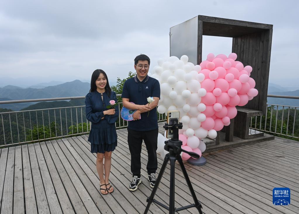 5月19日,由富阳当地青年人才担当的文旅推荐官正在用直播的方式推荐里山镇安顶山的特色文旅线路。