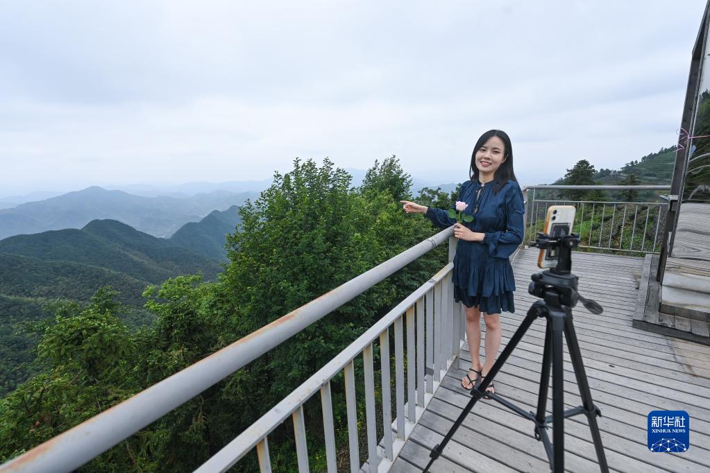 5月19日,由富阳当地青年人才担当的文旅推荐官正在用直播的方式推荐里山镇安顶山的特色文旅线路。