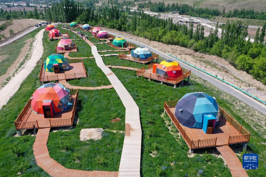这是在新疆伊犁哈萨克自治州霍城县大西沟乡桃花村拍摄的即将投入使用的星宿民宿(5月17日摄,无人机照片)。