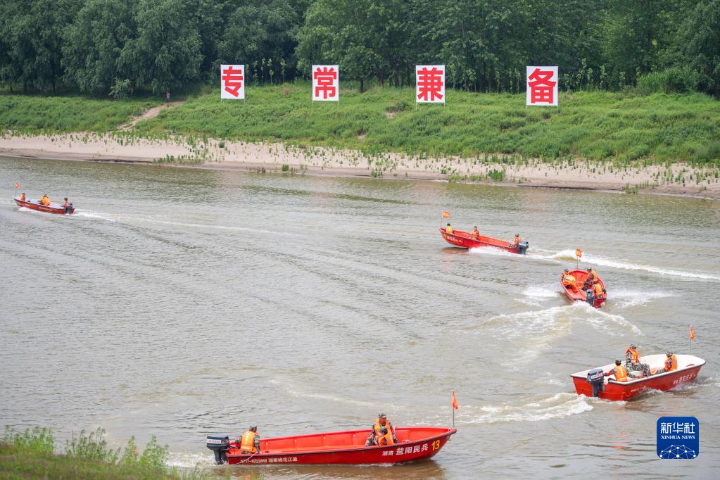为备战汛期,当日,湖南省益阳市防汛抗旱指挥部组织的洞庭湖区防汛抢险应急救援演练在益阳南县明山头镇防汛大堤沿线举行。当地应急救援队伍围绕散浸险情处置、特大管涌险情处置、群众紧急转移等项目进行演练,以增强防汛应急处置和水上抢险救灾能力。
