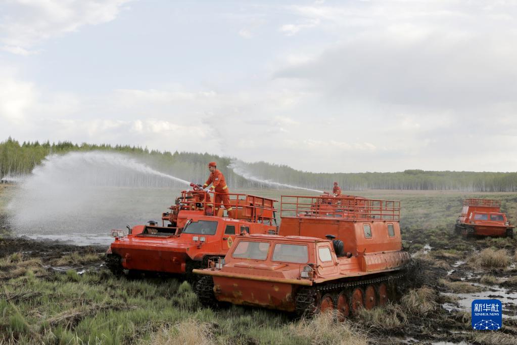 5月18日,在黑龙江黑河市,哈尔滨市森林消防支队沾河大队三中队指战员在沾河林业局幸福驻防点驾驶特种车辆开展灭火战术训练。
