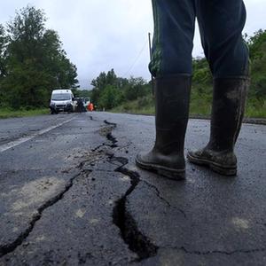 5月19日,在意大利北部艾米利亚-罗马涅大区博洛尼亚,山体滑坡造成地面出现裂缝。