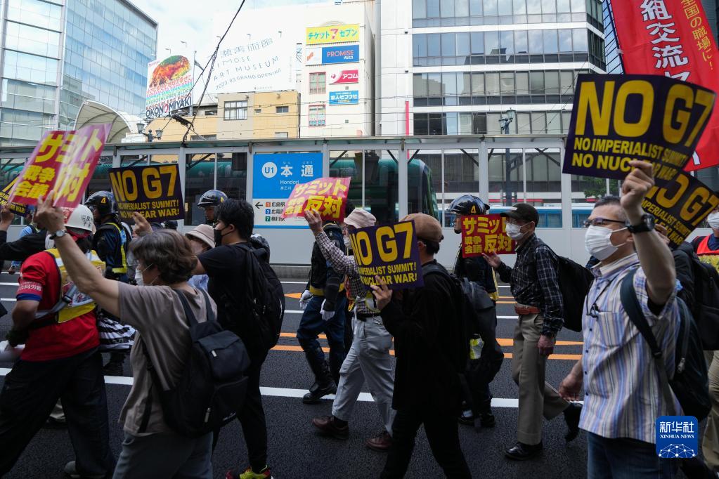 连日来,日本多个团体联合多国人士多次发起声势浩大的集会游行,抗议19日至21日在广岛举行的七国集团(G7)峰会。