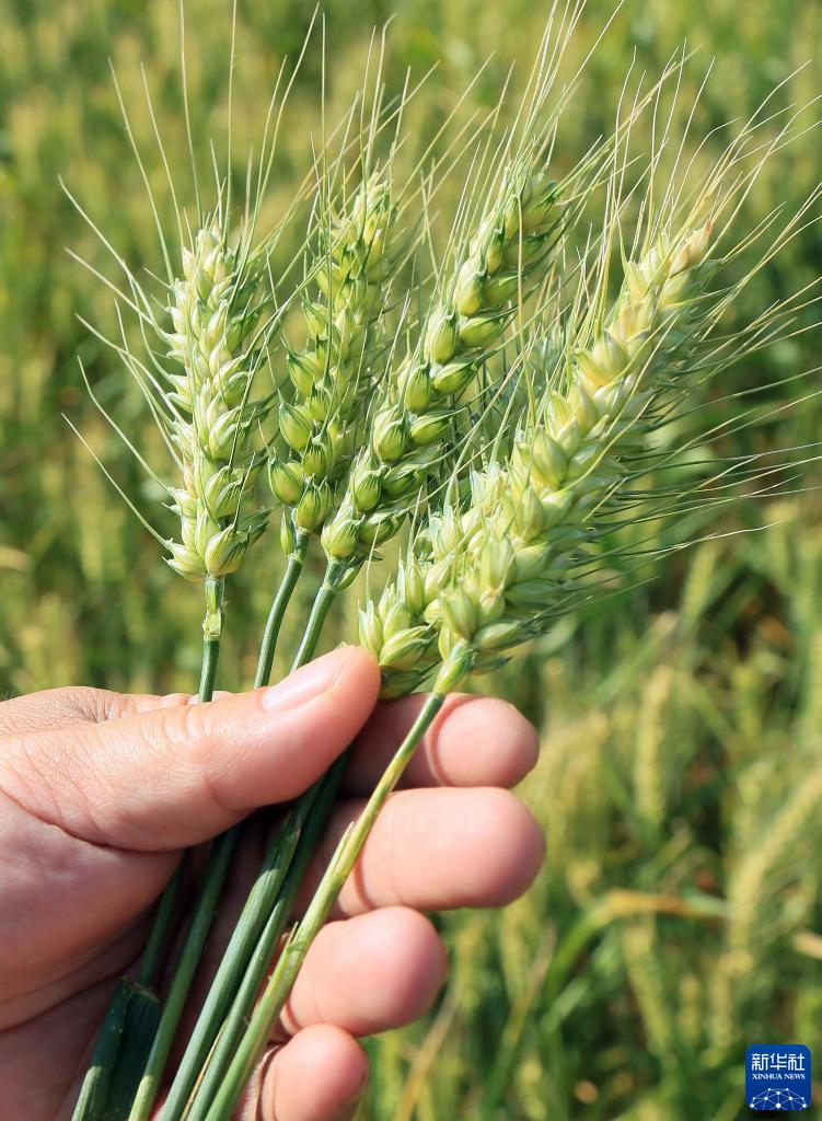 5月20日,在河南省洛阳市汝阳县柏树乡秦停村,农民在观察小麦长势。