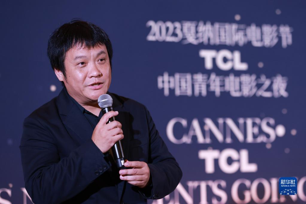 5月19日,在法国戛纳,中国青年电影全球推广计划推广大使、导演宁浩在“中国青年电影之夜”活动上致辞。