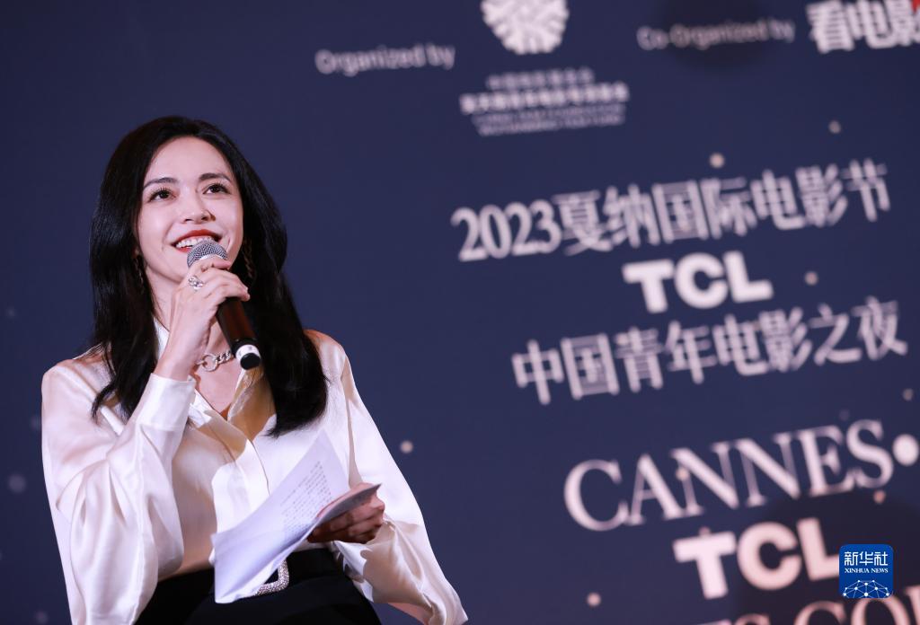 5月19日,在法国戛纳,演员姚晨在“中国青年电影之夜”活动上致辞。