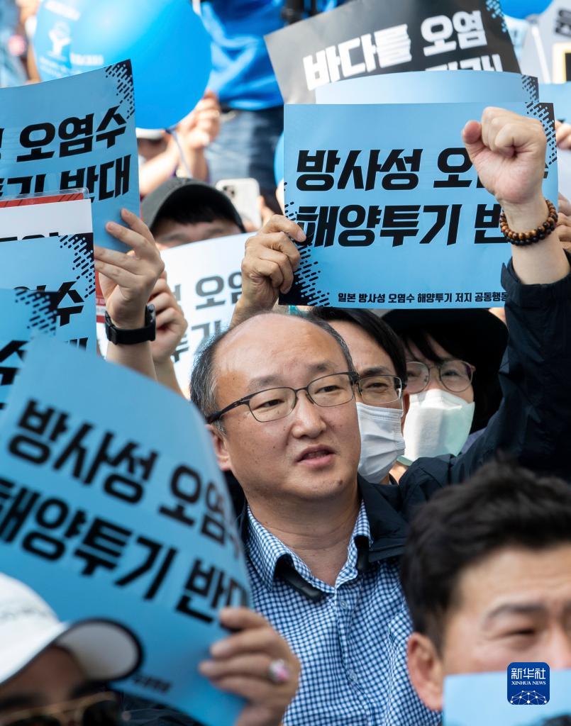 韩国多个市民团体20日在首尔市中心举行集会,强烈反对日本政府将福岛核污染水排入大海计划。