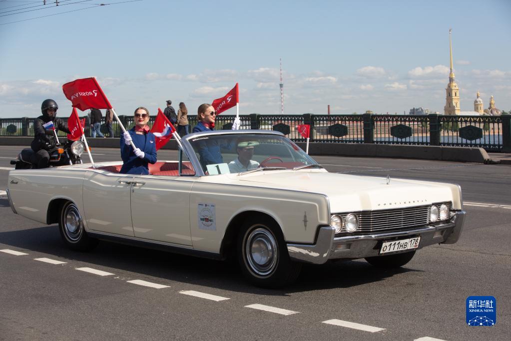 这是5月20日在俄罗斯圣彼得堡街头拍摄的老爷车。
