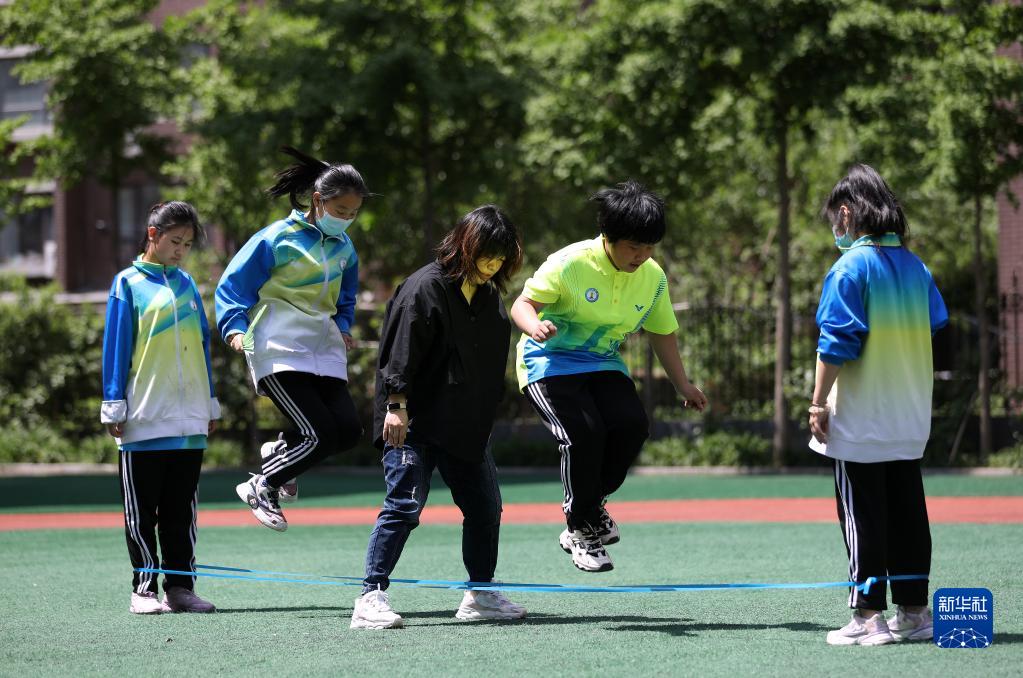 5月18日,午休时间,庄岩带着学生在操场上跳皮筋,这项普通的运动对于视障孩子来说是非常有挑战性的,也是锻炼孩子感知和定位能力的一项好运动。