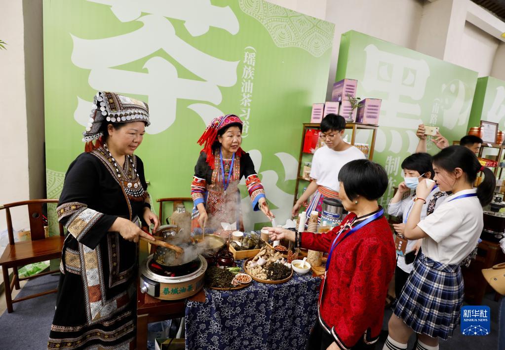 5月21日,在茶文化非遗项目展示交流活动上,参观者品尝瑶族油茶。