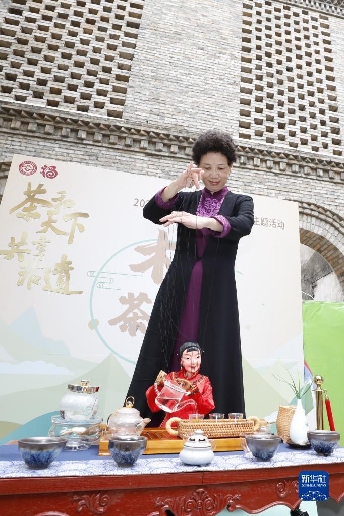 5月21日,在茶文化非遗项目展示交流活动上,工作人员表演木偶茶艺。
