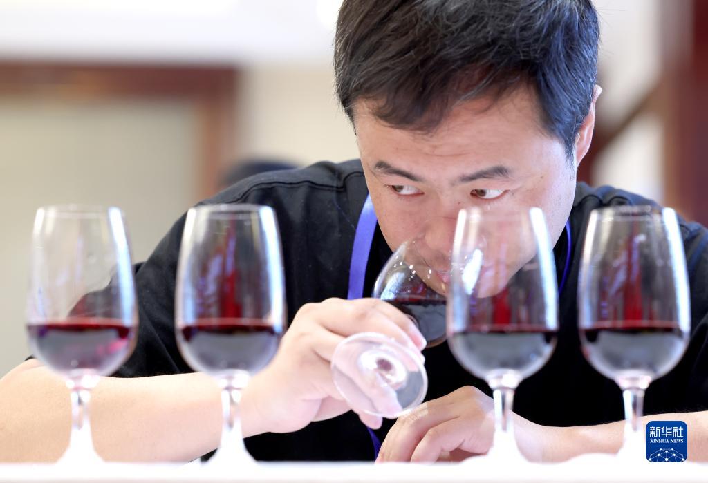 5月21日,参赛选手在2023年中国葡萄酒品酒师技能大赛实操环节的比赛中。