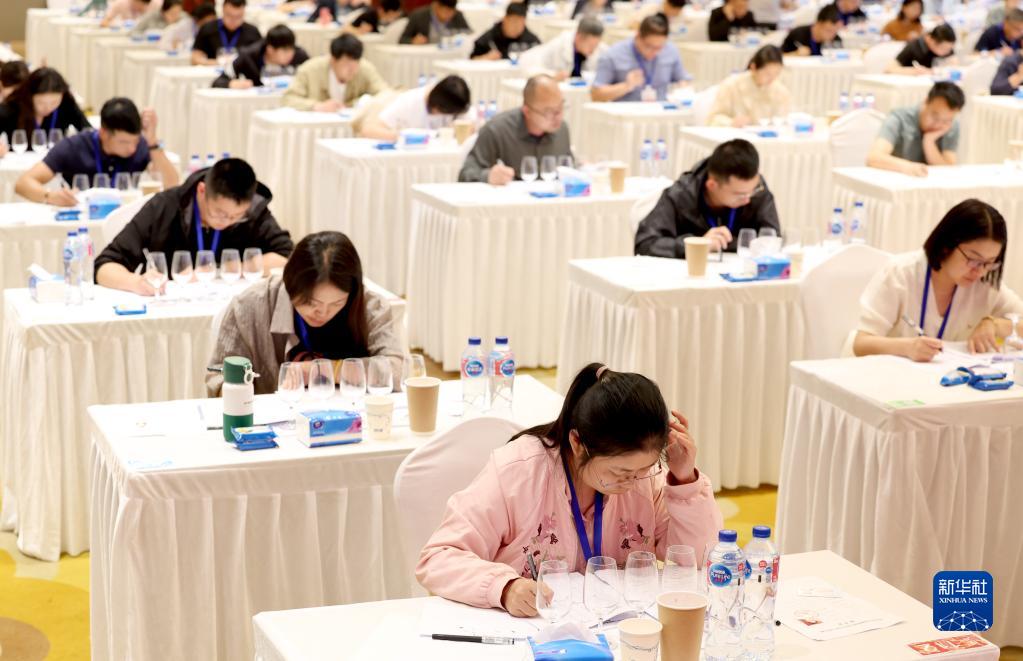 5月20日,参赛选手在2023年中国葡萄酒品酒师技能大赛笔试环节的比赛中。
