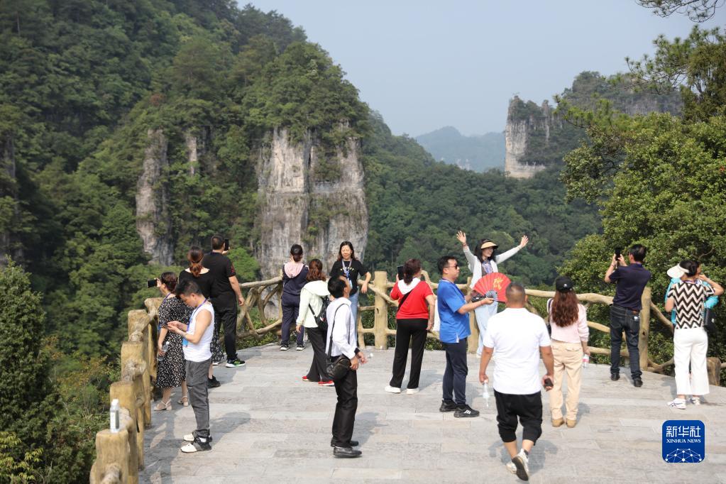 5月21日,游客在贵州省黔东南苗族侗族自治州施秉县云台山景区游览观光。