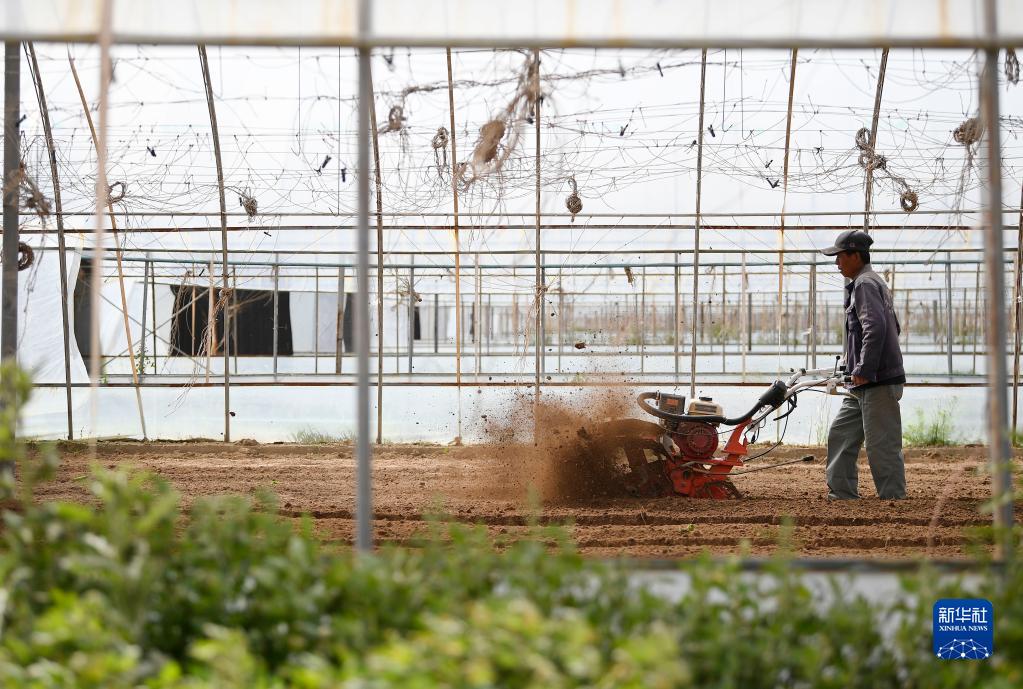 农户在宁夏青铜峡市大坝镇利民村蔬菜基地劳作(5月20日摄)。