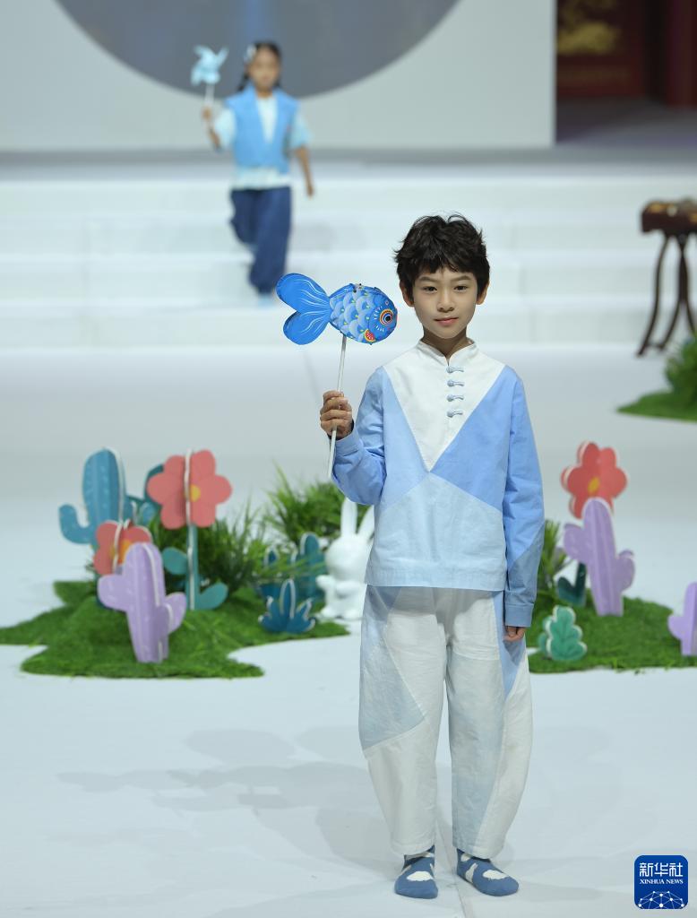 当日,一场以“夏·非遗华夏秀——小满到秋分”为主题的亲子时装秀活动在位于北京的中国工美馆中国非遗馆举办。