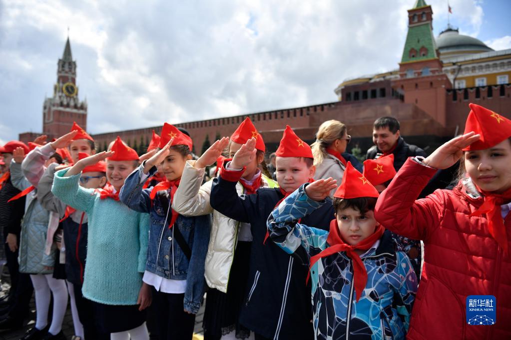 当日,俄罗斯莫斯科举行少先队员入队仪式,纪念少年先锋队成立101周年。