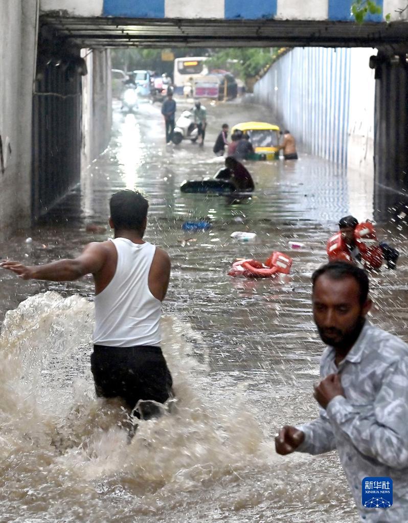 近日,强降雨导致印度班加罗尔部分地区积水,给出行带来不便。