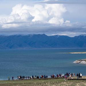 初夏的新疆赛里木湖,水天一色,湖畔野花绽放,吸引不少游人前来游览观光。赛里木湖是新疆海拔最高、面积最大的高山湖泊,四季景色宜人、美不胜收。