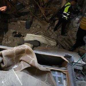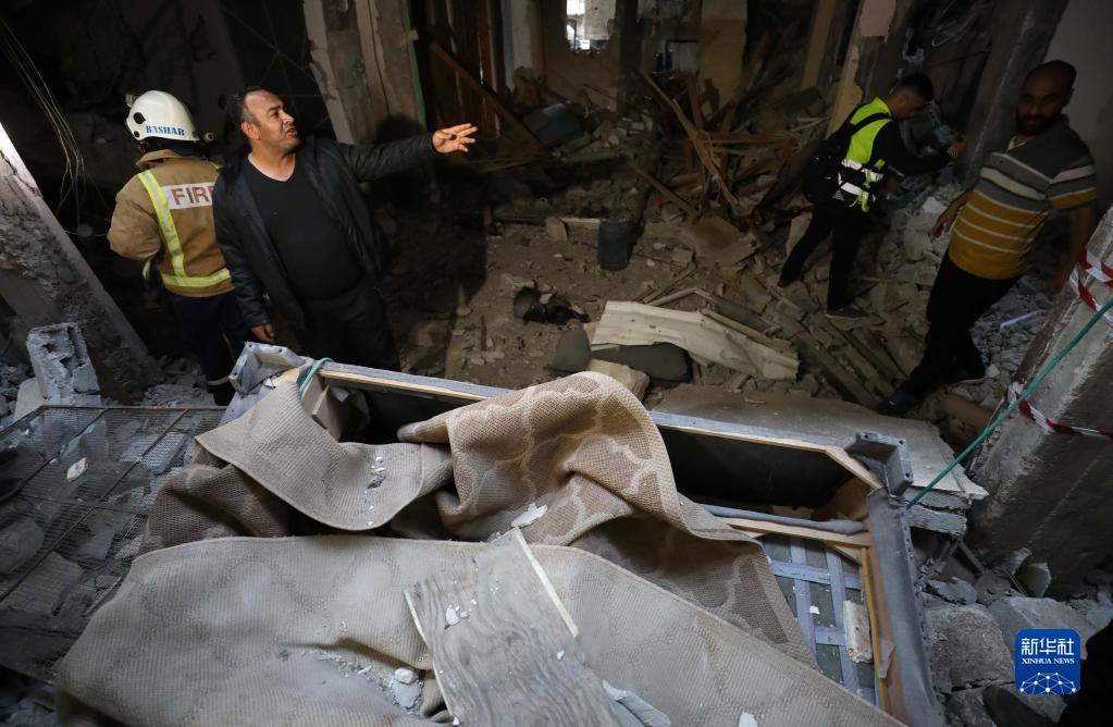 5月22日,在约旦河西岸城市纳布卢斯,人们查看冲突中损毁的房屋。