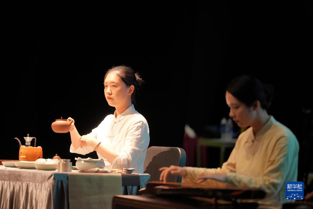 5月20日,表演者在新加坡中国文化中心举行的“茶和天下·粤韵雅集”活动中进行茶艺展示和古琴演奏。