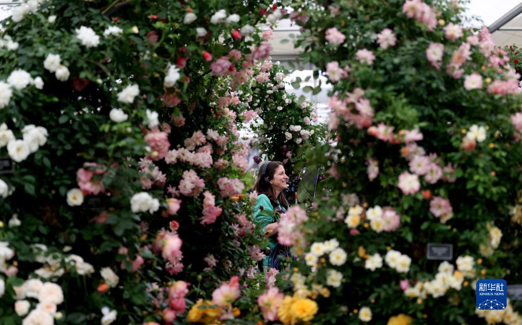 5月22日,一名女子在英国伦敦参加切尔西花展媒体日。