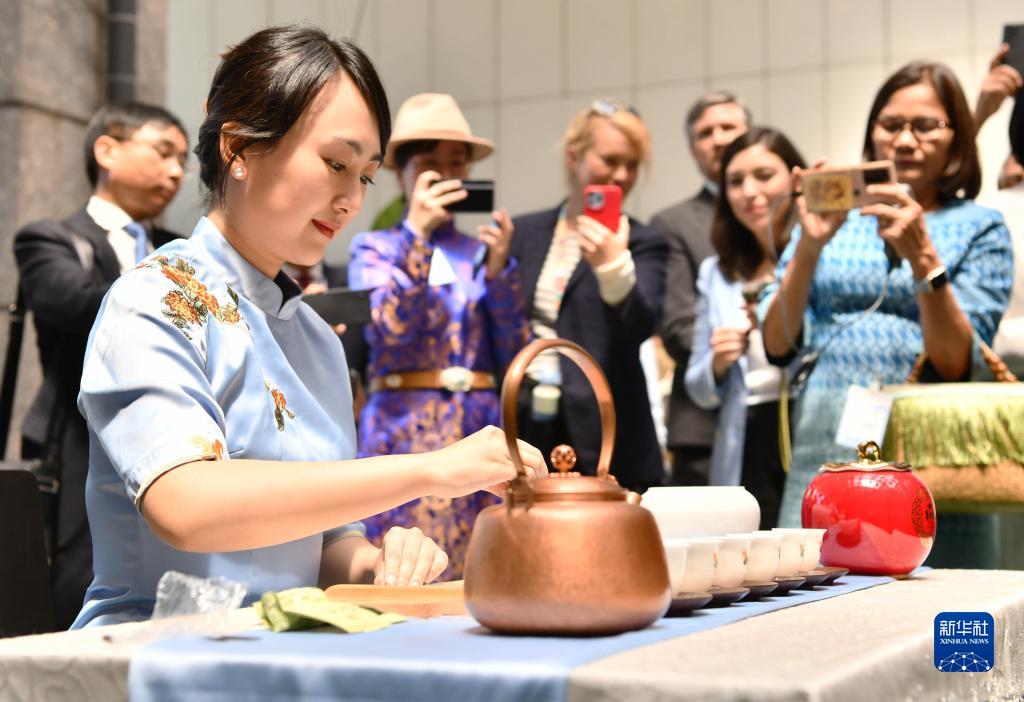 5月22日,在意大利罗马的联合国粮农组织总部,福建安溪铁观音茶文化系统的代表表演茶艺。