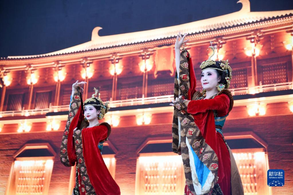 5月22日晚,舞蹈演员在2023陕西“博物馆与美好生活”文博之夜活动上表演唐乐舞大曲《团乱旋》。