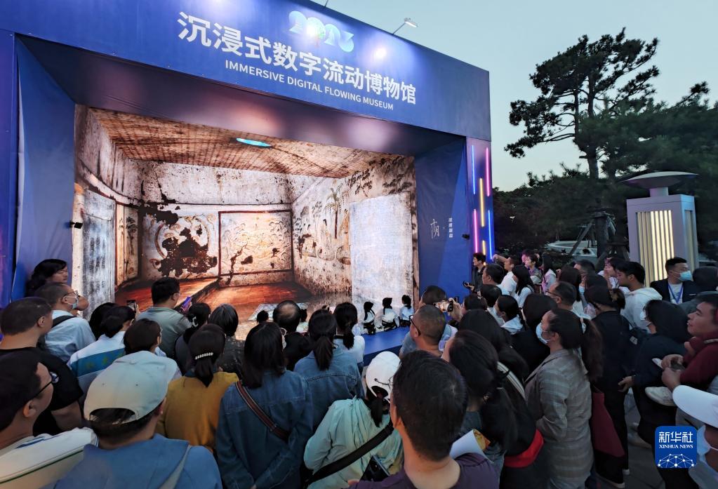 5月22日晚,在2023陕西“博物馆与美好生活”文博之夜活动上,游客参观沉浸式数字流动博物馆。