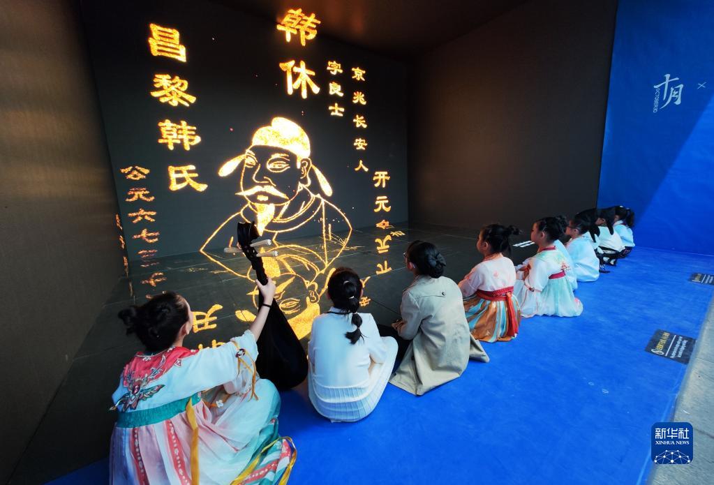 5月22日晚,在2023陕西“博物馆与美好生活”文博之夜活动上,小朋友在参观体验沉浸式数字流动博物馆。