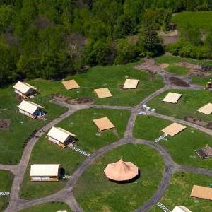 这是5月24日拍摄的伊春森工集团上甘岭林业局公司溪水林场在建的溪水野奢帐篷度假酒店项目(无人机照片)。