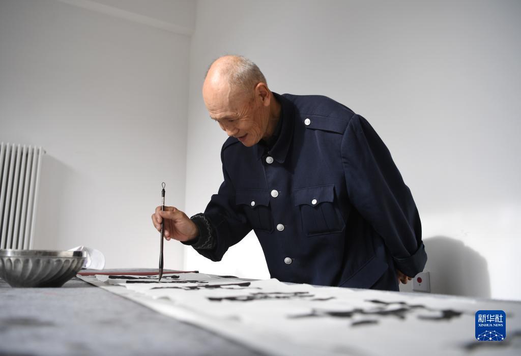 河北雄安新区容东片区南文营社区居民在社区养老驿站活动室练习书法(5月23日摄)。