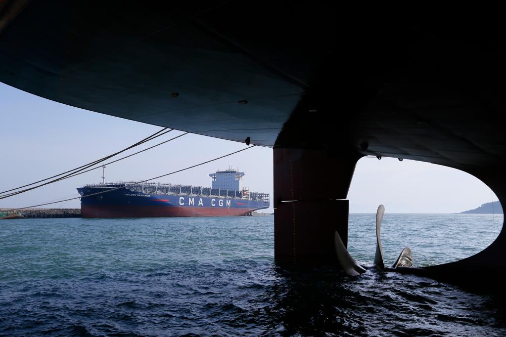 5月23日,青岛造船厂生产的5900TEU集装箱首制船建造完成即将交付比利时船东。